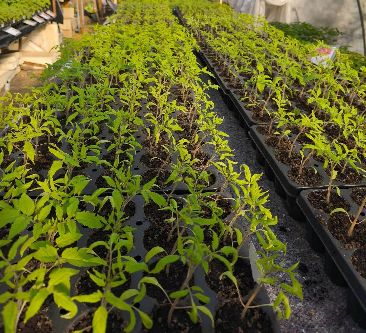 Notre diversité de plants de légumes constitue le cœur battant de notre pépinière. Si les tomates anciennes représentent notre spécialité - des Noires de Crimée aux Cœur de Bœuf, en passant par des variétés rares issues de croisements patiemment stabilisés - notre passion s'étend à toute une gamme de légumes du potager. Poivrons colorés, aubergines élégantes, courges généreuses, herbes aromatiques et légumes-feuilles : chaque plant est cultivé avec le même souci d'excellence et de préservation de la biodiversité.